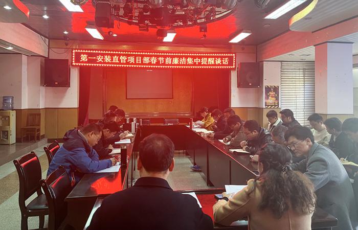 2月4日下午,第一安裝直管項(xiàng)目部黨支部在直管部會議室開展春節(jié)前廉潔提醒談話。直管部領(lǐng)導(dǎo)班子、二線關(guān)鍵崗位人員、項(xiàng)目經(jīng)理共計(jì)20人參會。