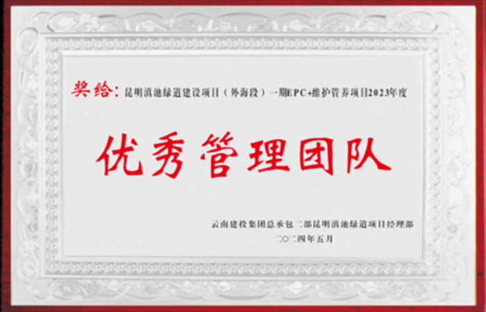 近日,昆明滇池綠道建設(shè)項(xiàng)目指揮部召開2023年度優(yōu)秀個人、優(yōu)秀團(tuán)體表彰會。昆明滇池綠道建設(shè)項(xiàng)目(外海段)一期EPC+維護(hù)管養(yǎng)土建七工區(qū)榮獲“優(yōu)秀管理團(tuán)隊(duì)”榮譽(yù),項(xiàng)目經(jīng)理謝國飛榮獲“優(yōu)秀項(xiàng)目經(jīng)理”稱號,項(xiàng)目資料員劉麗榮獲“優(yōu)秀個人”稱號。