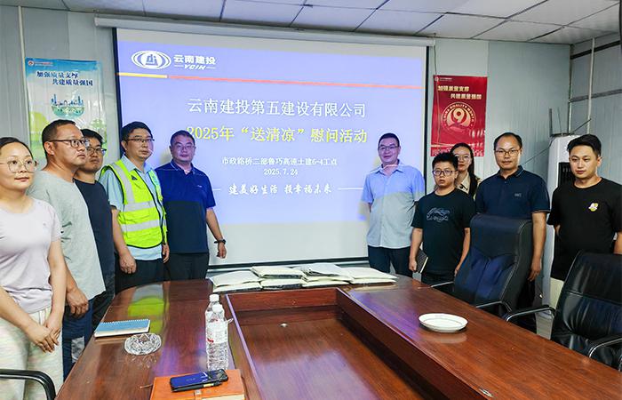 7月24日,公司副總經(jīng)理匡浩到市政路橋二部負(fù)責(zé)施工的魯巧高速公路6-4工點(diǎn)項(xiàng)目開展汛期安全檢查暨夏季“送清涼”慰問活動(dòng),為一線管理人員送去關(guān)懷與清涼,并就汛期安全生產(chǎn)及工程進(jìn)度推進(jìn)提出工作要求。