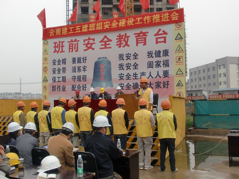 本次推進會主要圍繞班組每日班前安全會、三級入場教育、農(nóng)民工業(yè)余學校、班組安全協(xié)管員制度等幾個方面來進行?,F(xiàn)場還組織了一個操作班組完整演練了“班組班前安全會”的全過程。