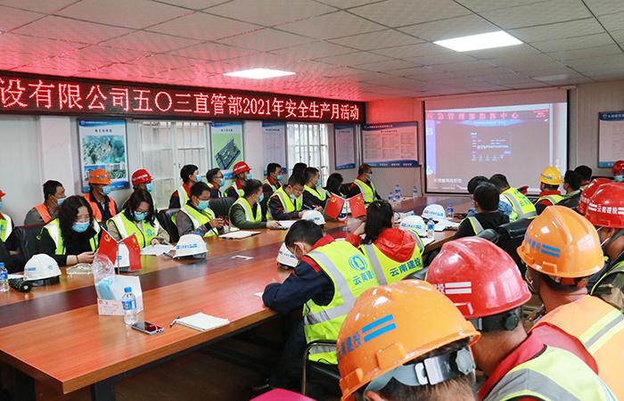 6月20日,五〇三直管項目部在晉寧區(qū)安企居住區(qū)建設項目E地塊項目舉行了安全月啟動儀式,活動以“落實安全責任,推動安全發(fā)展”為主題,項目部建設單位代表、監(jiān)理單位代表、直管部班子成員、各科室負責人、各項目經理、安全負責人、農民班組等55人參加。