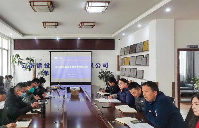 1月3日,第五直管部黨支部組織班子成員、在昆項目經(jīng)理及二線全體管理人員共25人召開集中廉潔談話,為即將到來的2023年春節(jié)嚴明紀律要求,提高干部職工的拒腐防變能力,營造風清氣正的節(jié)日氛圍。