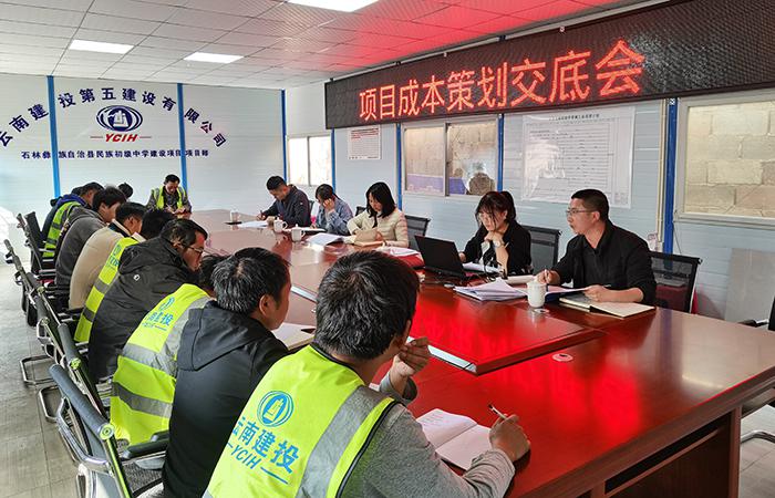 2月6日上午,石林彝族自治縣民族初級(jí)中學(xué)建設(shè)項(xiàng)目組織召開成本策劃交底會(huì),切實(shí)落實(shí)項(xiàng)目盈利點(diǎn)、虧損點(diǎn)、風(fēng)險(xiǎn)管控等要求,公司企業(yè)管理部相關(guān)人員參會(huì)。