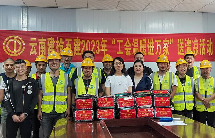 6月9日,公司工會主席冷蕊帶隊到路橋二部施工的魯巧高速6-4工點項目開展2023年“工會溫暖進萬家”送清涼慰問活動。