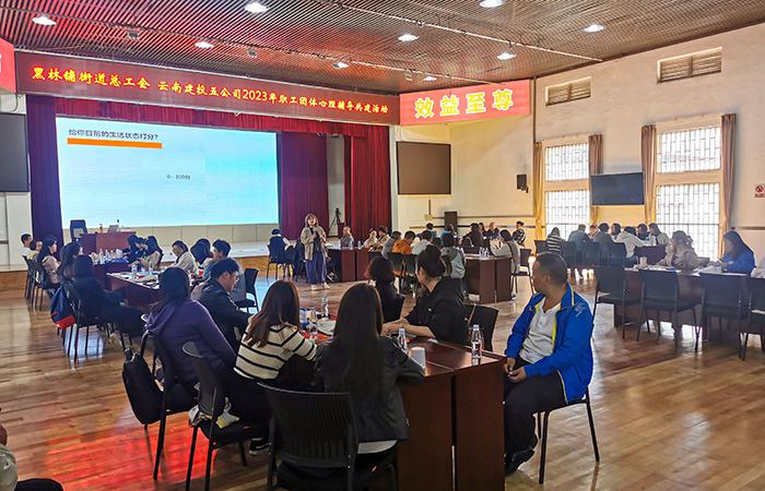 活動邀請到云南開放大學心理健康教育課程思政教學名師張倩老師,采用PPT從“心理常態(tài)與偏態(tài)”“心理問題與心理疾病”“心理咨詢”等方面結合案例分析的方式,圖文并茂、深入淺出的為職工講述了心理健康知識與調試方法。在心理賦能老師的帶動下,才加活動的職工依次開展了“繪制生命線”“繩索游戲——探索人際關系”“生涯彩虹圖——找到人生的位置”以及“案例分析”等體驗式活動,職工們逐漸敞開心扉、積極分享,在有趣的互動游戲中放松身心、充分體驗和交流,現場歡笑聲不斷。