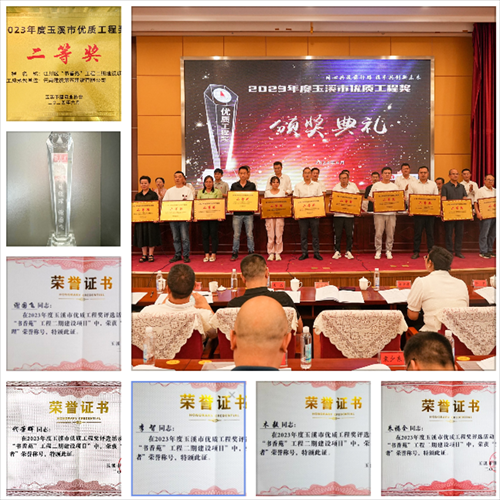 近日,在2023年度玉溪市優(yōu)質(zhì)工程獎(jiǎng)?lì)C獎(jiǎng)典禮上,由公司五〇一直管項(xiàng)目部負(fù)責(zé)施工的江川區(qū)“書香苑”工程二期建設(shè)項(xiàng)目榮獲“2023年度玉溪市優(yōu)質(zhì)工程二等獎(jiǎng)”榮譽(yù),項(xiàng)目經(jīng)理謝國飛榮獲“優(yōu)秀項(xiàng)目經(jīng)理”稱號,項(xiàng)目技術(shù)負(fù)責(zé)人代榮輝、項(xiàng)目管理人員木毅、李智以及朱福全等4名同志榮獲“突出貢獻(xiàn)者”稱號。
