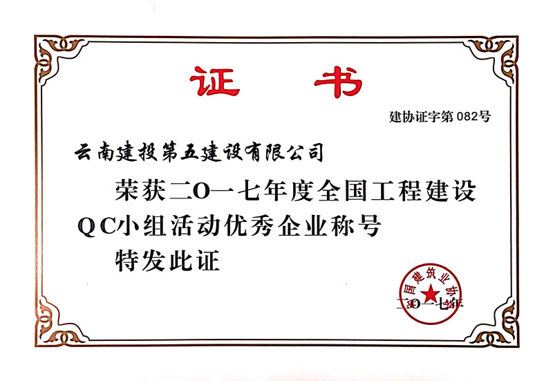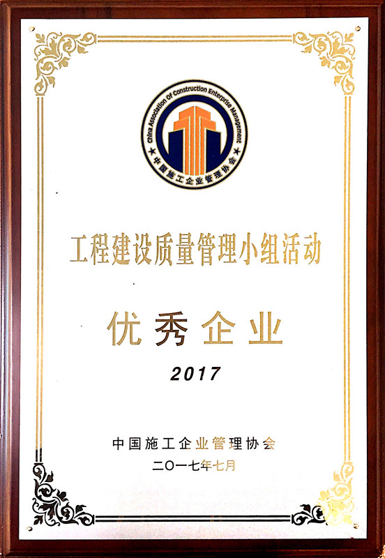 公司榮獲2017年度全國(guó)工程建設(shè)QC小組活動(dòng)優(yōu)秀企業(yè)稱號(hào)