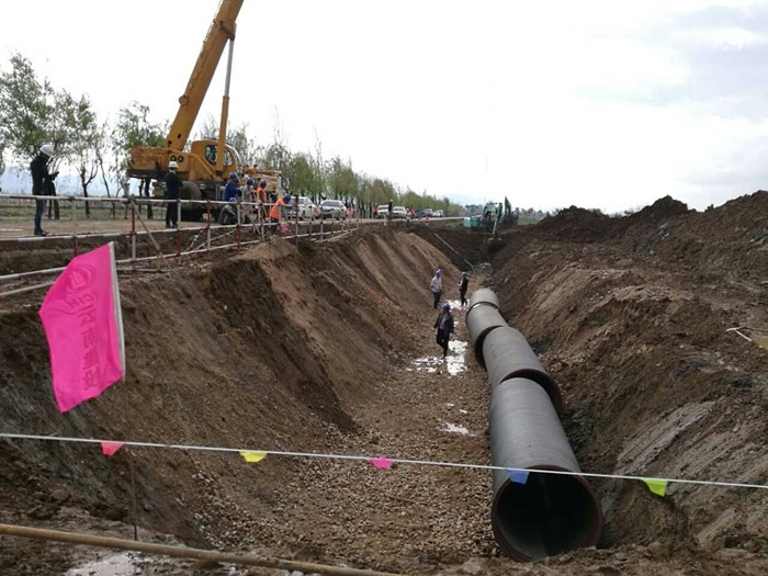 大理州三庫連通一期工程位于云南省大理州洱源縣境內(nèi)及大理市上關(guān)鎮(zhèn),為洱海應(yīng)急補(bǔ)水的重要部分,工程內(nèi)容主要為DN1200球墨鑄鐵管埋設(shè),有效工期僅為35天。公司施工的六標(biāo)段位于路線中部,路線沿永安江布設(shè),分為永安江段、鄧川上關(guān)段。起止樁號為:永安江段YA04+400~YA05+570,鄧川上關(guān)段DS00+000-DS01+800,管道路線全長2970米。