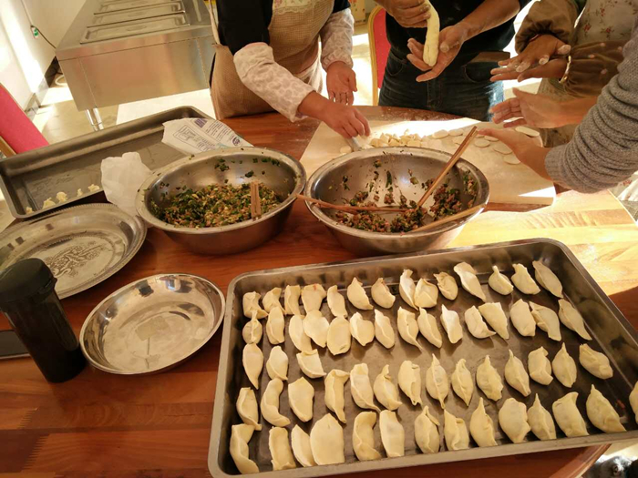 下午3點三工區(qū)二線人員開始在食堂忙碌起來,和面、揉面、搟餃皮,撿菜、剁肉、拌餃餡,大家邊討論邊學習包起南方人不擅長的餃子來,一陣忙碌后一盤盤餃子上爐開蒸了。現(xiàn)場施工人員下班后冬至晚餐開始,大家敞開肚皮吃著熱騰騰的餃子,品嘗著不一樣的味道,體會著不一樣的溫暖,感受著中國傳統(tǒng)文化的魅力。