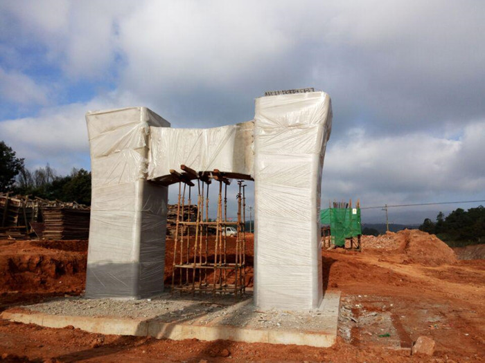 正在養(yǎng)護(hù)的橋墩墩柱