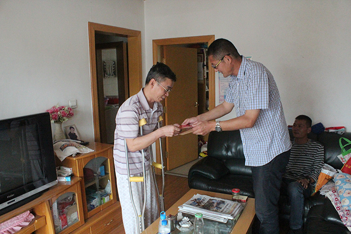 技術(shù)支持: 方森科技 2013年9月16日上午,公司第八直管項目部看望了因工傷在家休養(yǎng)的職工石亞南,了解了他的恢復(fù)情況,并為他送上節(jié)日的慰問。在中秋佳節(jié)到來之際,直八部考慮到石亞南雖然享受了工傷的優(yōu)惠政策,每月工資沒有受到影響,但他為恢復(fù)骨折而進(jìn)行的治療費用金額較高,結(jié)合實際情況,直管部不僅為他送去了過節(jié)費,還送去500元的困難職工慰問金。