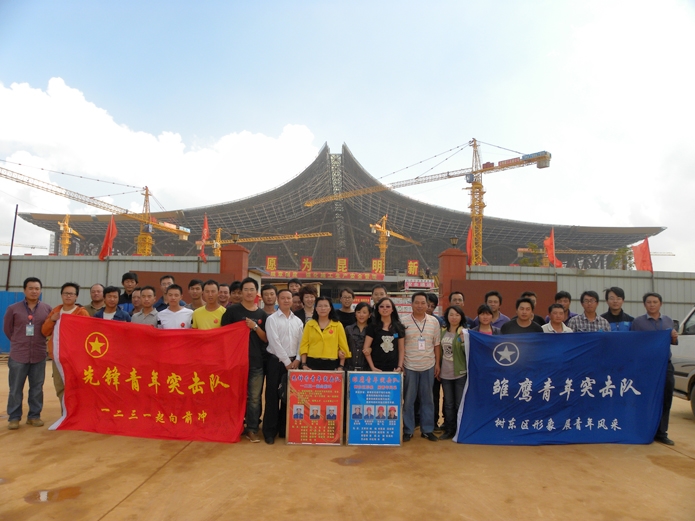 9月19日上午,集團(tuán)公司團(tuán)委副書(shū)記雷棲、公司團(tuán)委副書(shū)記楊春華等聯(lián)袂到公司新機(jī)場(chǎng)直管部為東、西兩個(gè)施工區(qū)的青年人舉行 “青年突擊隊(duì)”授旗儀式,這標(biāo)志著新機(jī)場(chǎng)直管部的兩支青年突擊隊(duì)——雛鷹隊(duì)和先鋒隊(duì)正式成立。