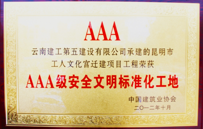 公司承建的昆明市工人文化宮遷建項(xiàng)目工程榮獲AAA級(jí)安全文明標(biāo)準(zhǔn)化工地