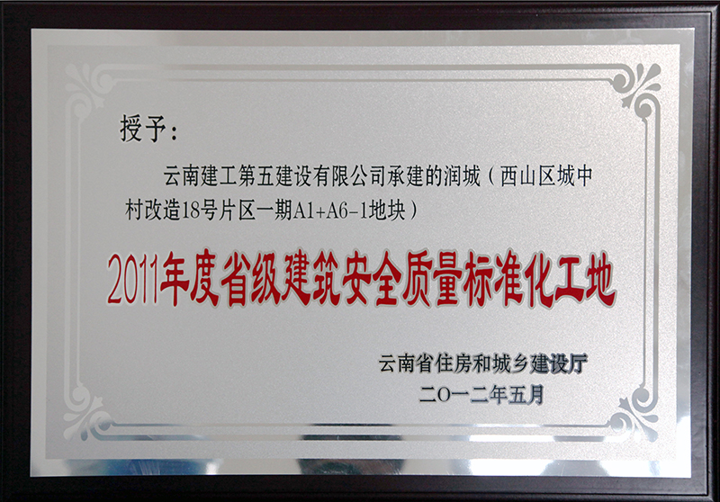 第五直管部承建施工的潤(rùn)城(西山區(qū)城中村改造18號(hào)片區(qū)一期A1+A6-1地塊)工程獲“2011年度省級(jí)建筑安全質(zhì)量標(biāo)準(zhǔn)化工地”稱號(hào)