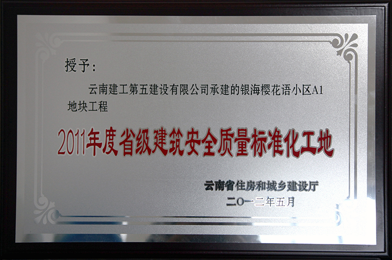 第一直管部承建施工的銀海櫻花語小區(qū)A1地塊工程獲“2011年度省級(jí)建筑安全質(zhì)量標(biāo)準(zhǔn)化工地”稱號(hào)